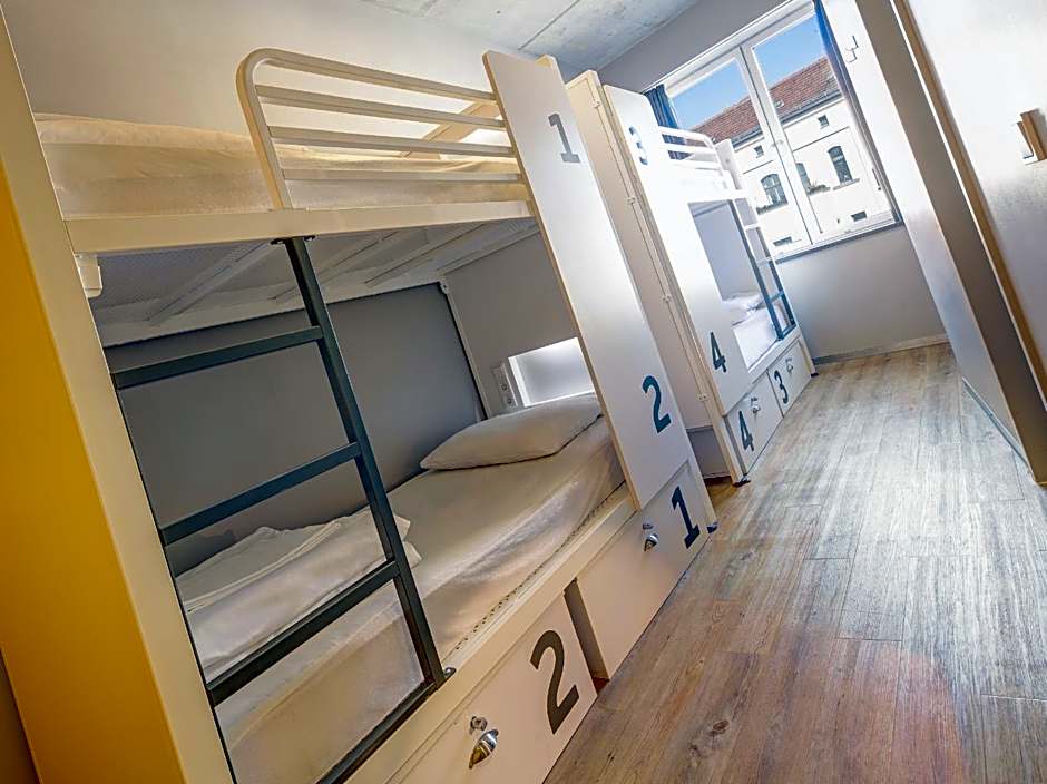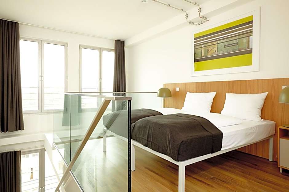 Brightly furnished room with a private bathroom. Includes bed linen, a bed light and power sockets. "The perfect space for two travelers on tour.